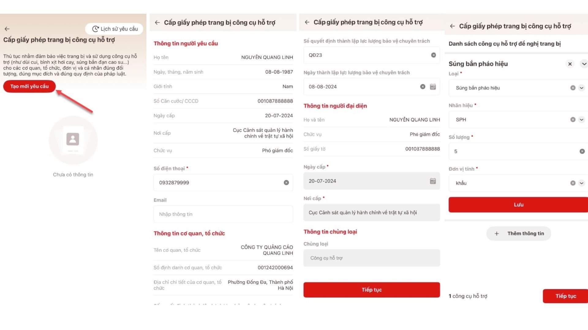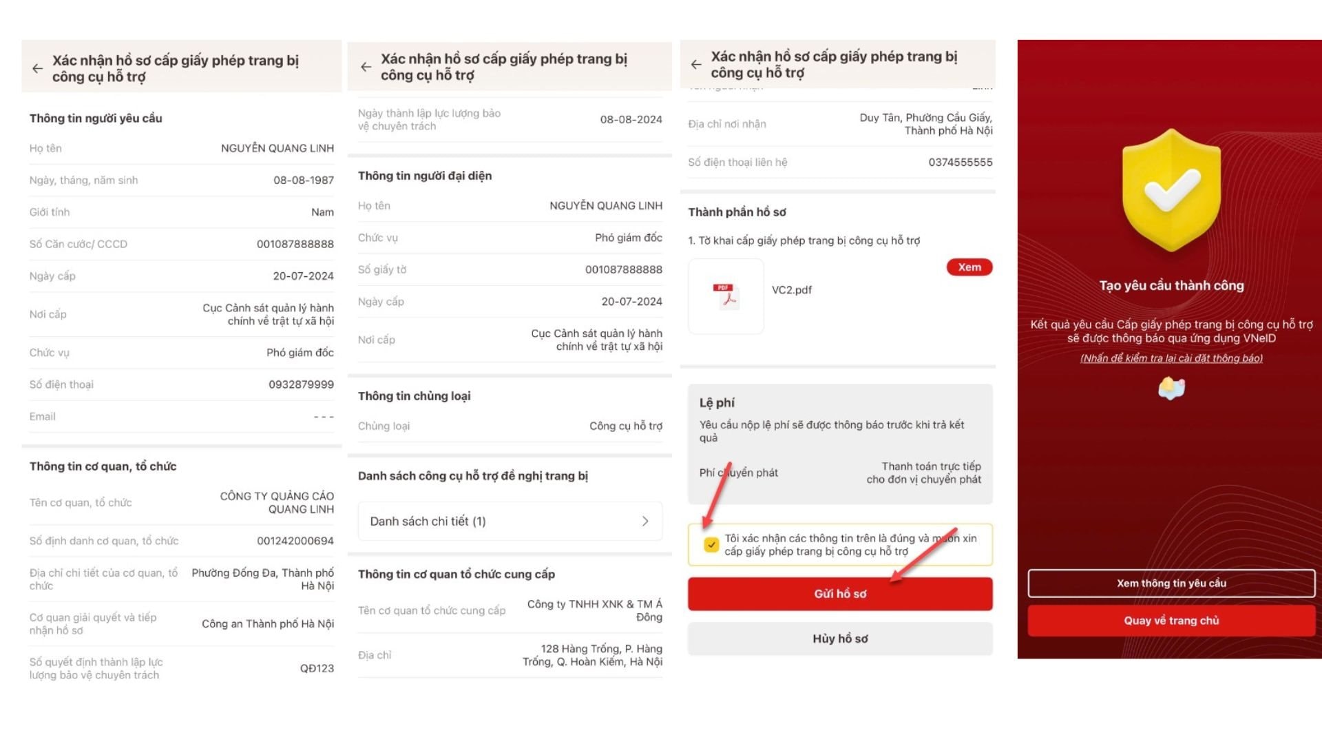 Bên cạnh thủ tục vận chuyển, người dân và tổ chức cũng có thể thực hiện cấp giấy phép trang bị công cụ hỗ trợ trực tuyến trên ứng dụng VNeID. Thủ tục này dành cho tài khoản định danh điện tử mức 2 đã được phân quyền tương ứng.