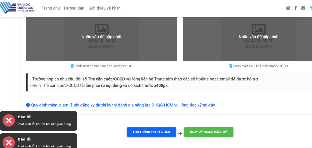 Không ít thí sinh cho biết không thể tải ảnh căn cước công dân lên hệ thống dù vẫn đang trong thời hạn đăng ký và đã hoàn tất thanh toán lệ phí.