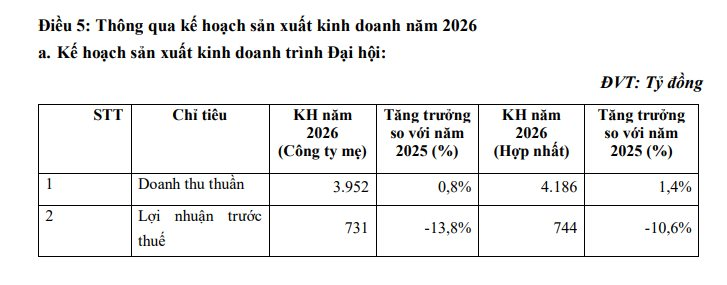Trong bối cảnh đó, Vicostone đặt mục tiêu doanh thu hợp nhất năm 2026 đạt 4.186 tỷ đồng, tăng khoảng 1,4% so với kết quả thực hiện năm 2025. Tuy nhiên, lợi nhuận sau thuế dự kiến đạt 744 tỷ đồng, thấp hơn khoảng 10% so với năm trước.