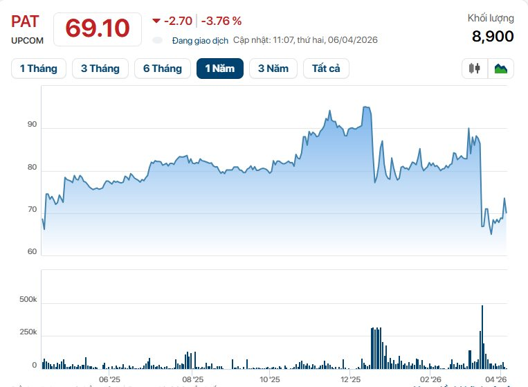 Trên thị trường, cổ phiếu PAT chốt phiên 3/4 đạt 71.000 đồng/cp.