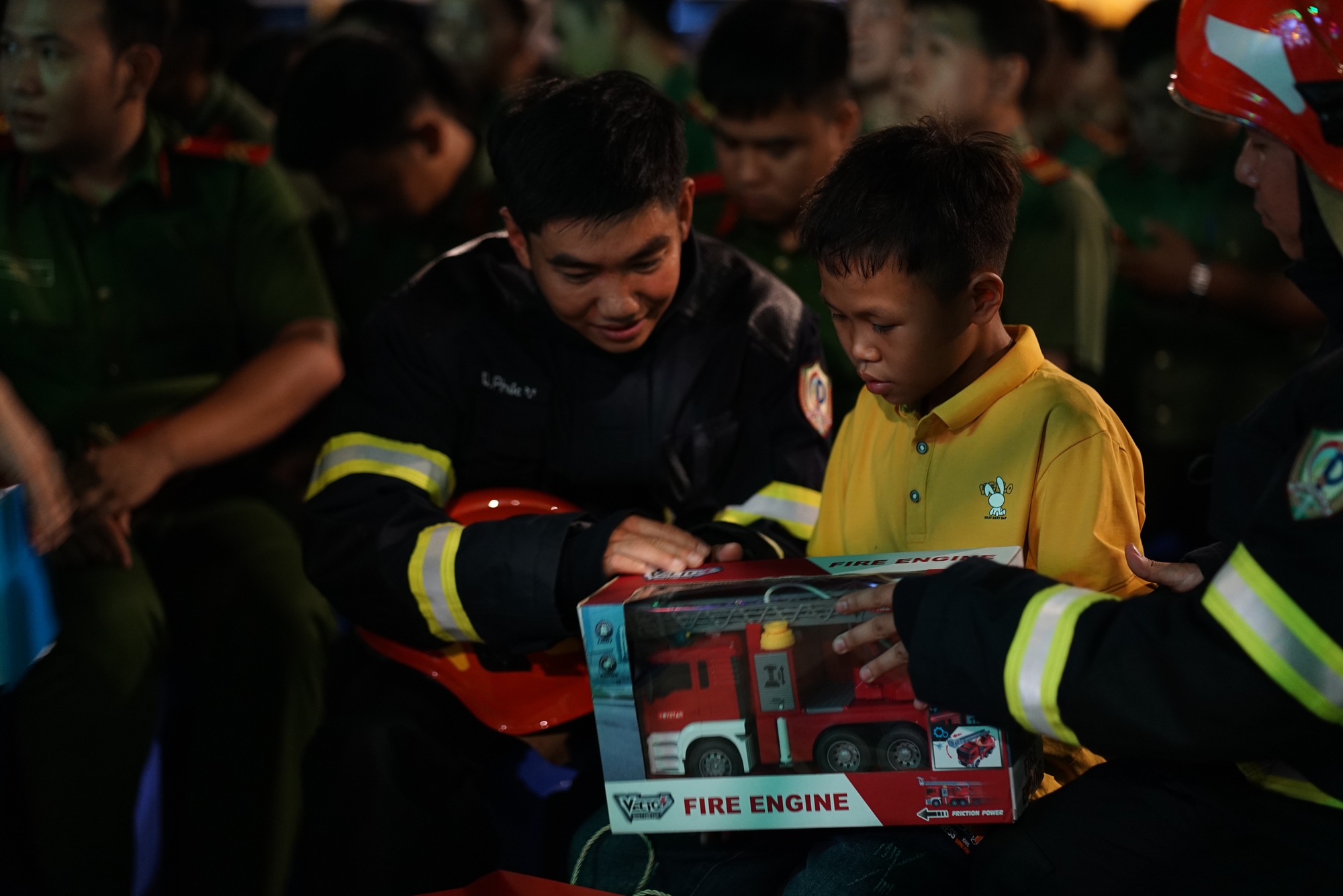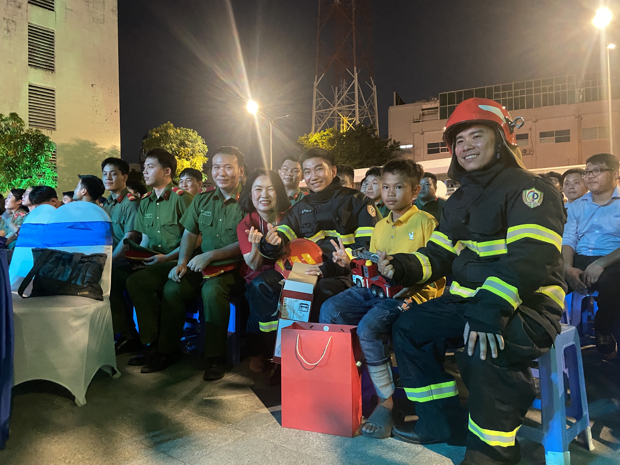 Trong không gian rực rỡ cờ hoa, dưới ánh đèn sân khấu, những thước phim về tinh thần dũng cảm của người chiến sĩ công an được tái hiện, trong đó, câu chuyện giải cứu bé trai mắc kẹt giữa hai bức tường tại Bình Dương vào ngày 25/3 vừa qua một lần nữa khiến người xem lặng đi vì sự mưu trí và tình người.