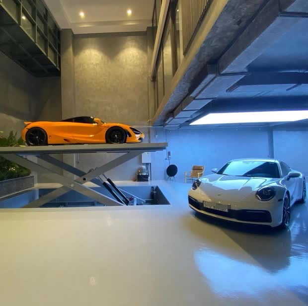 Trong một vài lần chia sẻ, netizen từng xuýt xoa trước bộ sưu tập xe tiền tỷ được Cường Đô La xếp dài ở gara. Đặc biệt hơn cả, phía cuối gara là vị trí cầu nâng thủy lực. Chỉ bằng vài thao tác điều khiển, cầu nâng sẽ đưa chiếc xe lên vị trí tầng 2, cũng là không gian tiếp khách chính.