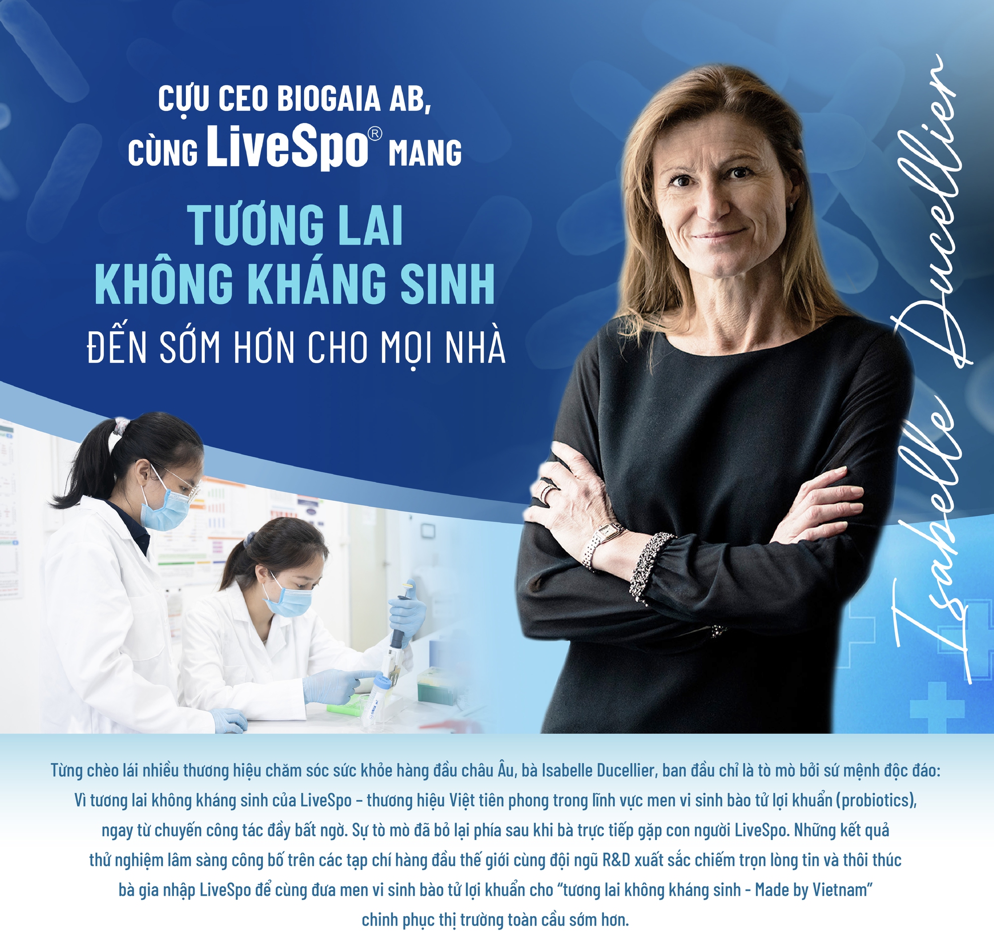 Với nền tảng khoa học vững chắc, chiến lược phát triển bài bản và sự đồng hành của các đối tác quốc tế giàu kinh nghiệm, LiveSpo đang từng bước hiện thực hóa mục tiêu, giúp Tương lai không kháng sinh đến gần hơn với nhiều người. Việc bà Isabelle Ducellier – cựu CEO BioGaia AB – gia nhập Hội đồng quản trị không chỉ bổ sung kinh nghiệm và góc nhìn toàn cầu, mà còn mở ra cơ hội kết nối mạng lưới, thị trường và tiêu chuẩn quốc tế cho LiveSpo. Đây sẽ là đòn bẩy quan trọng để công ty đưa các giải pháp chăm sóc sức khỏe an toàn, hiệu quả của Việt Nam đến với cộng đồng trong nước và quốc tế, góp phần khẳng định vị thế khoa học Việt Nam trên bản đồ toàn cầu.