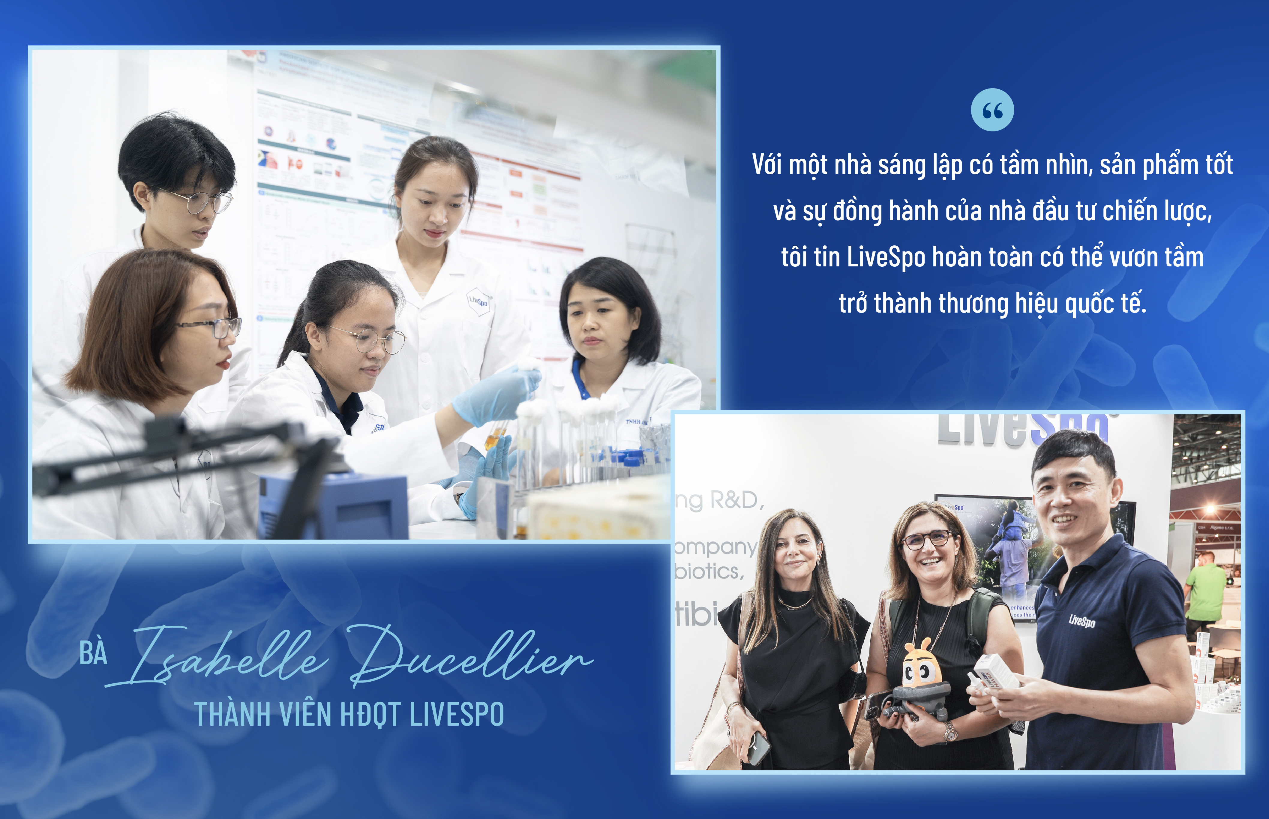 Từ kinh nghiệm nhiều năm dẫn dắt BioGaia AB, bà Isabelle Ducellier nhận ra ở LiveSpo một hướng đi khác biệt, đột phá và đầy tiềm năng, đó là khai phá ứng dụng men vi sinh bào tử lợi khuẩn vào những lĩnh vực còn bỏ ngỏ, ví dụ như men vi sinh bào tử lợi khuẩn cho đường hô hấp. Với góc nhìn của người từng đưa thương hiệu vươn ra thị trường toàn cầu, bà tin LiveSpo đang sở hữu "chìa khóa" để bước vào nhiều thị trường tỷ đô, nếu kiên định đúng lộ trình.
