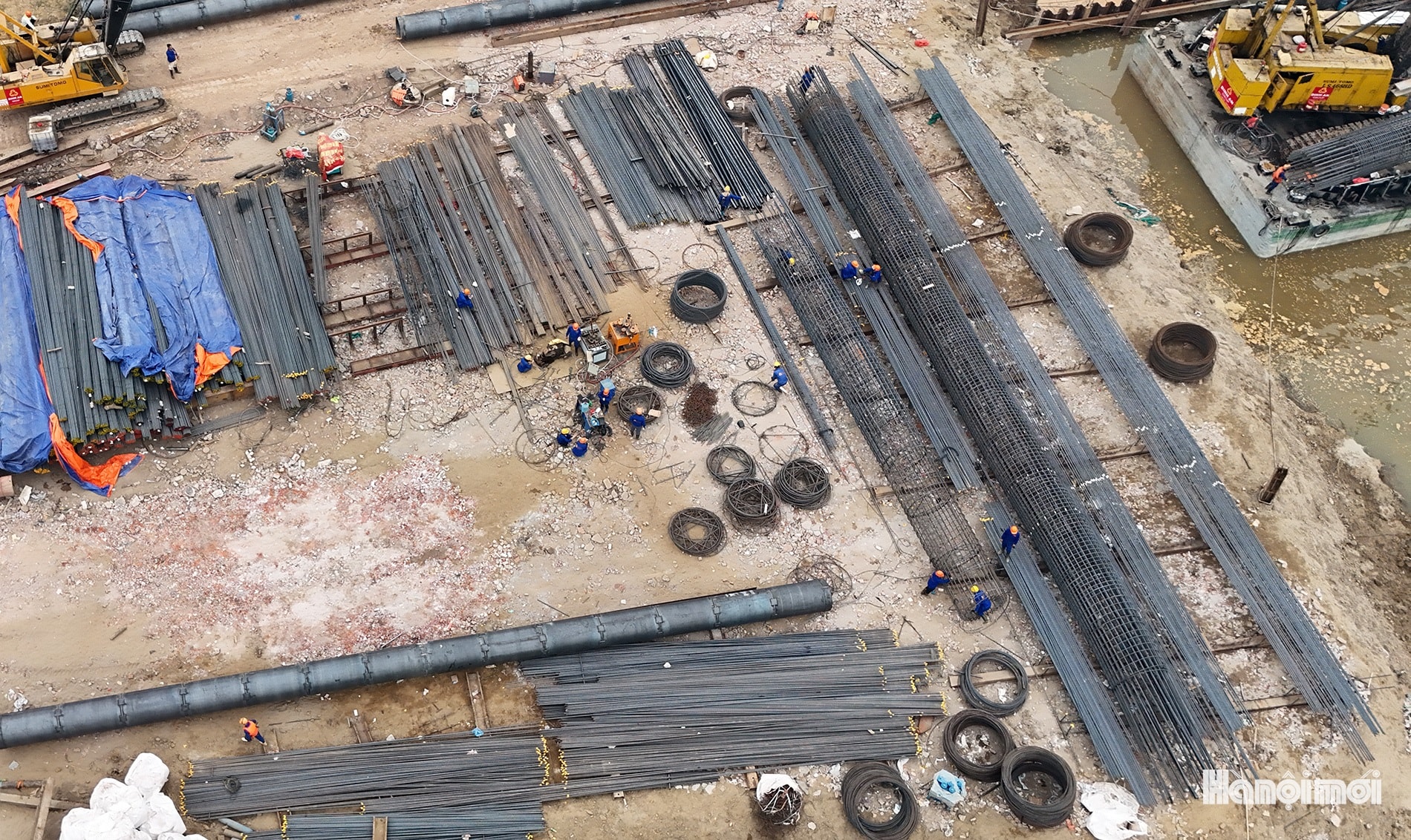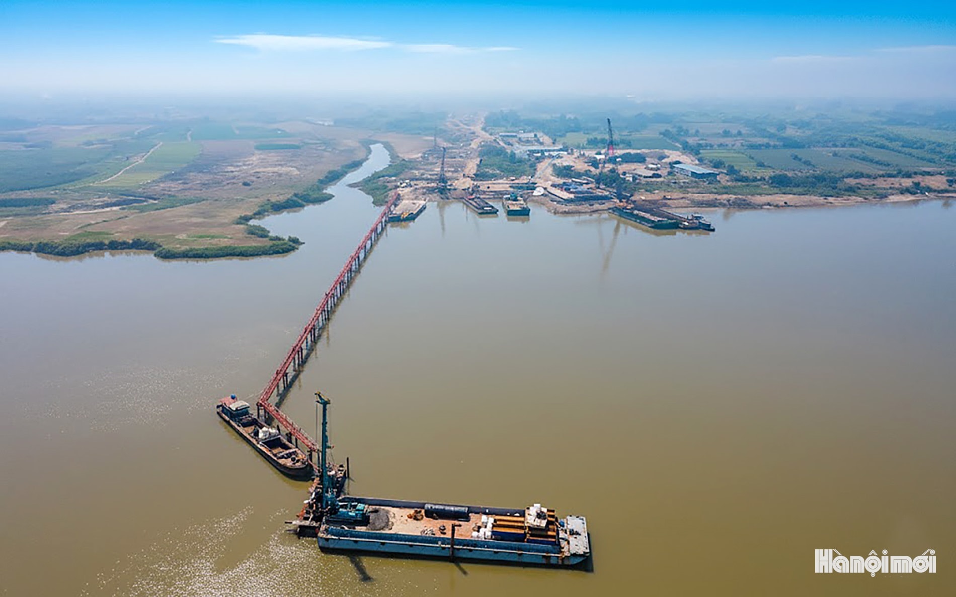 Phía bờ Nam, đơn vị đang chuẩn bị dây chuyền để khoan cọc D1200 thuộc các trụ P19 đến trụ P21. Dự kiến, đơn vị thi công sẽ hoàn thành kết cấu phần dưới trong tháng 12-2026; hoàn thành kết cấu phần trên trong quý II-2027.