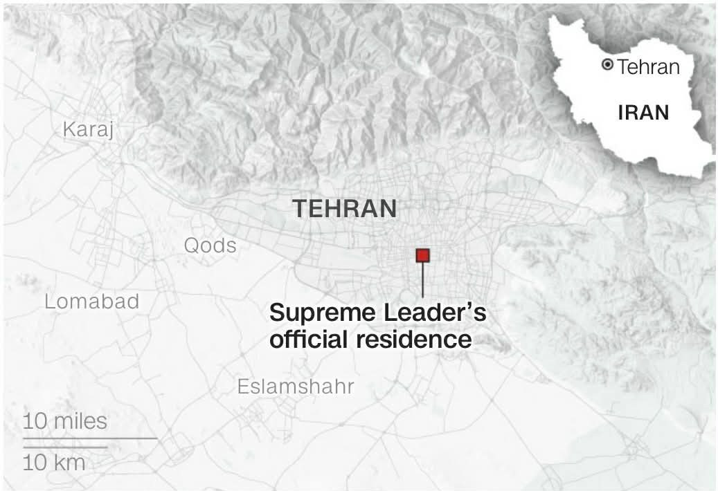 Vị trí khu phức hợp nơi nhà lãnh đạo Iran thiệt mạng. Ảnh: CNN
