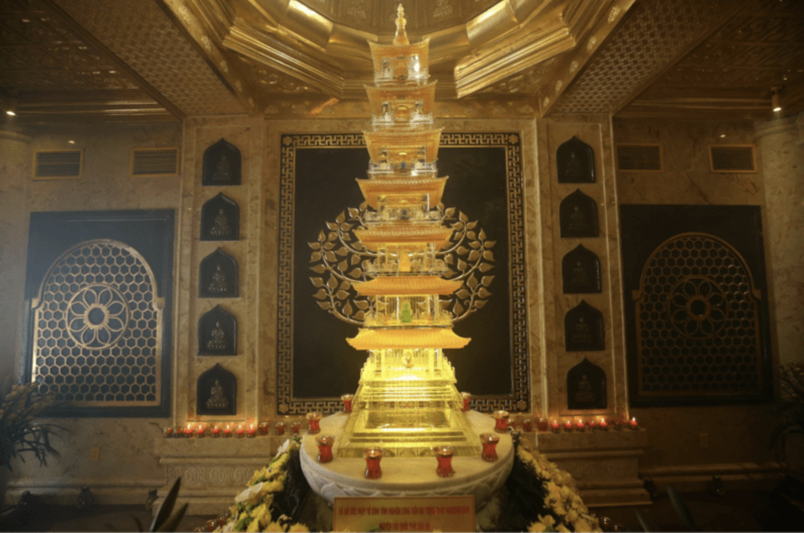 Ngọc Xá Lợi Phật được đặt trong tháp lưu ly 7 tầng trong suốt