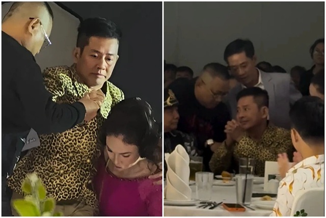 Trong phần nghi lễ, nam nghệ sĩ xúc động rơi nước mắt, không nói lên lời. Nghệ sĩ Tấn Hoàng phải phát biểu thay, gửi lời chào, lời chúc và cảm ơn tới khách dự tiệc.