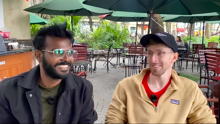 Hai chàng trai quốc tịch Ấn Độ và Anh bất ngờ gặp nhau, rồi rủ nhau cùng vào quán cà phê trò chuyện bằng tiếng Việt, clip thu hút hàng triệu lượt xem trên TikTok.