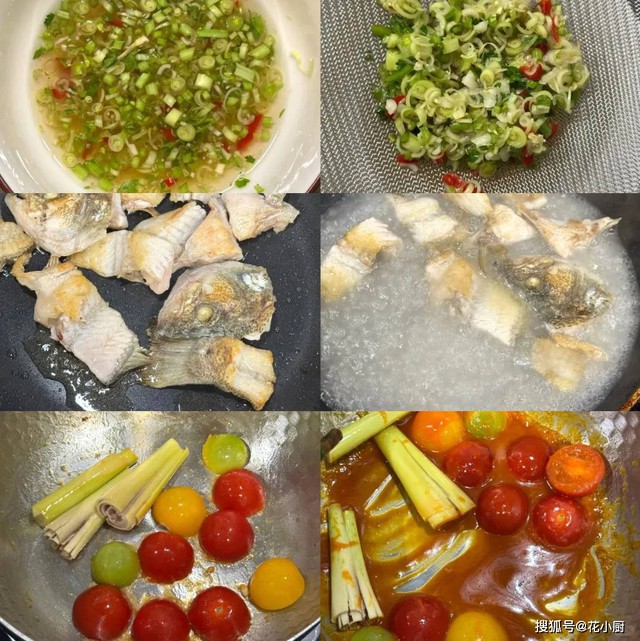 Sơ chế: Thái phi lê cá, ướp đường + muối + bột năng, trộn đều với dầu. Xương cá ướp muối + bột năng + dầu (ít bột hơn phần thịt). Sả đập dập, cà chua bi cắt đôi, lá chanh thái chỉ. Thân non sả đập dập rồi băm nhỏ, cuống rau mùi + tỏi băm nhỏ, ớt tươi cắt nhỏ. Chuẩn bị một chén tương tom yum.