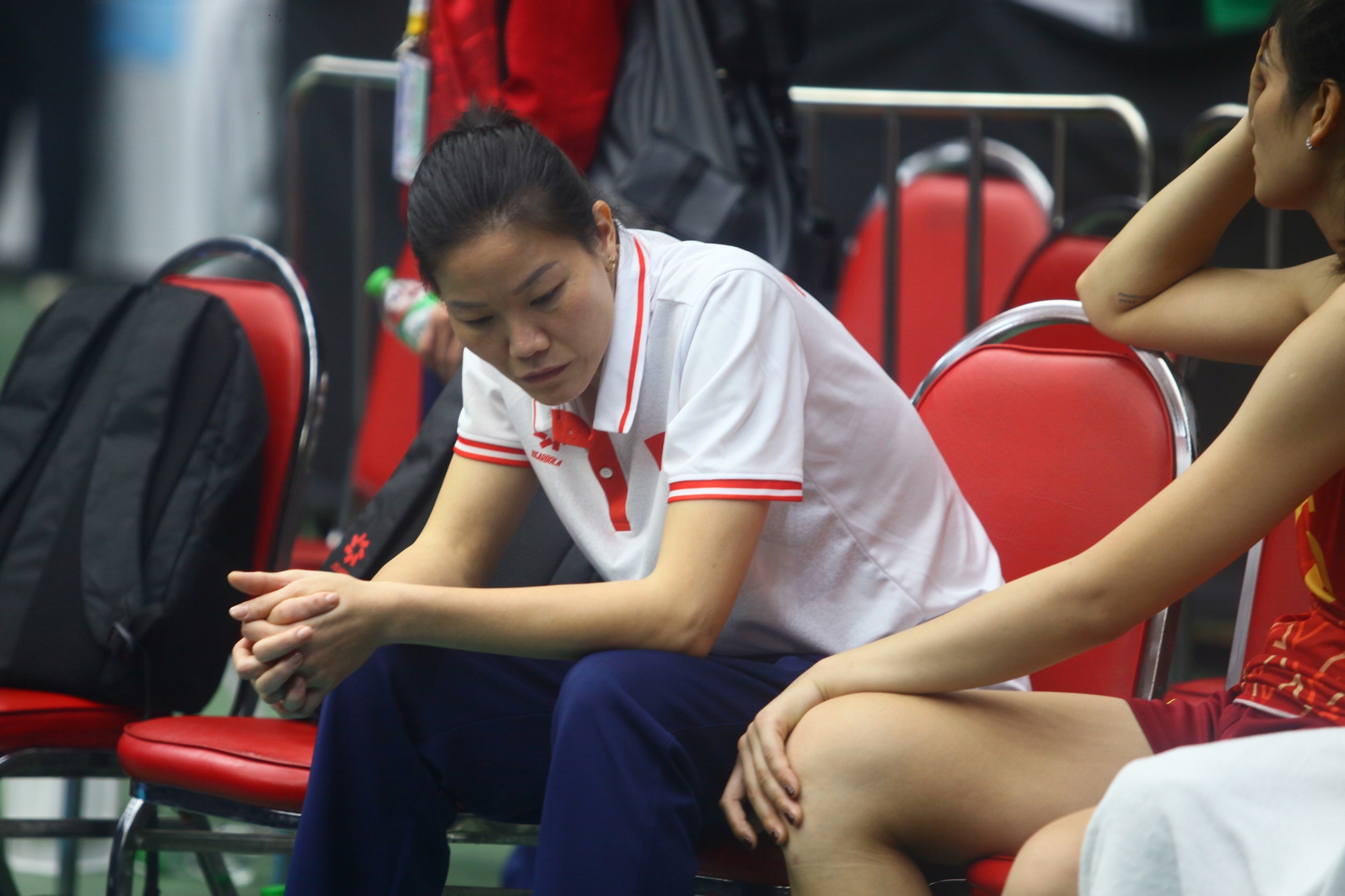 Trợ lý HLV Nguyễn Thị Ngọc Hoa trầm tư trước kết quả cay đắng của các học trò.