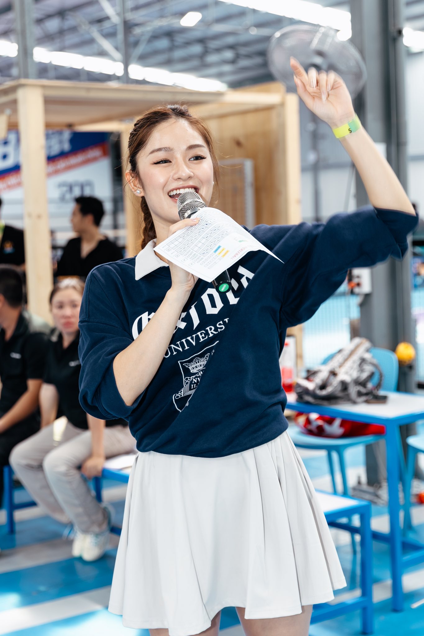 Xuất hiện xuyên suốt các ngày thi đấu, nữ MC này gây ấn tượng với phong cách dẫn dắt tự nhiên, chuyên nghiệp. Cô lựa chọn hình ảnh năng động, phù hợp với tinh thần thể thao hiện đại, đồng thời giữ được sự thân thiện khi tương tác với khán giả.