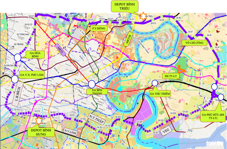 Metro số 6 là tuyến đường sắt đô thị vành đai trong của TP.HCM. Tập đoàn Xây dựng Thái Bình Dương đề xuất giai đoạn 1 từ ga Bà Quẹo đến ga Phú Hữu dài khoảng 22,85km - Ảnh: Tập đoàn Xây dựng Thái Bình Dương