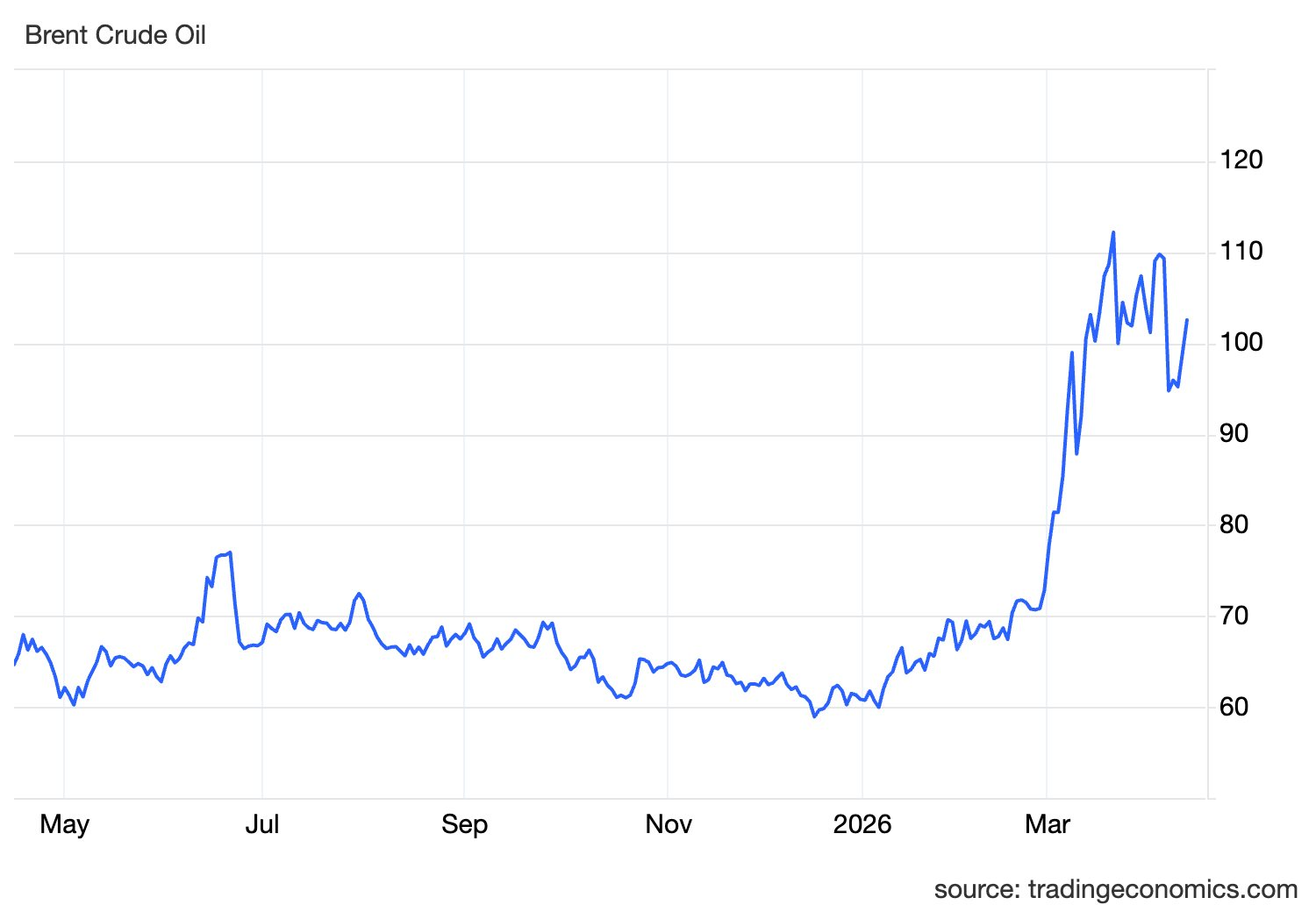 Giá dầu thô tương lai của Mỹ giao tháng 5 đã tăng hơn 8% lên 104,5 đô la mỗi thùng. Giá dầu Brent chuẩn quốc tế giao tháng 6 tăng 7,5% lên 102,3 đô la.