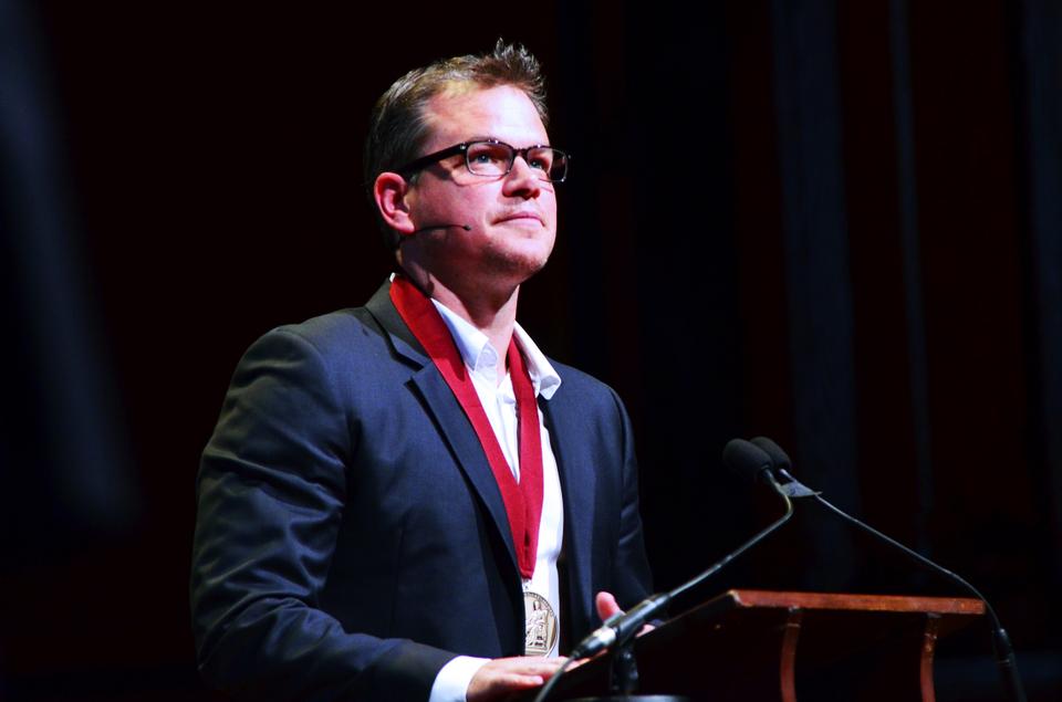 Matt Damon phát biểu khi nhận Huân chương nghệ thuật Harvard năm 2013