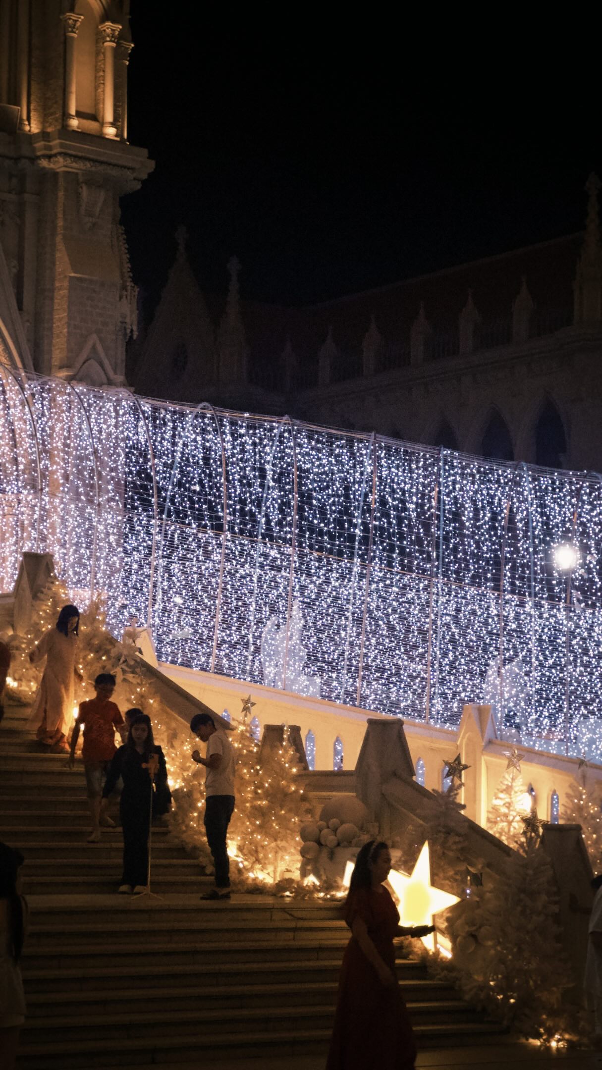 Nhà thờ này trang trí tiểu cảnh hoành tráng thu hút lượng lớn khách tham quan đến check-in và tận hưởng không khí nhộn nhịp đêm Giáng sinh.