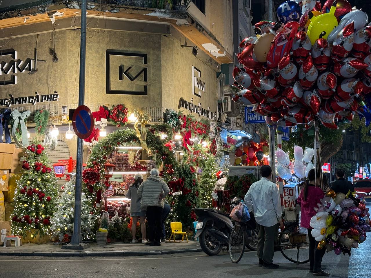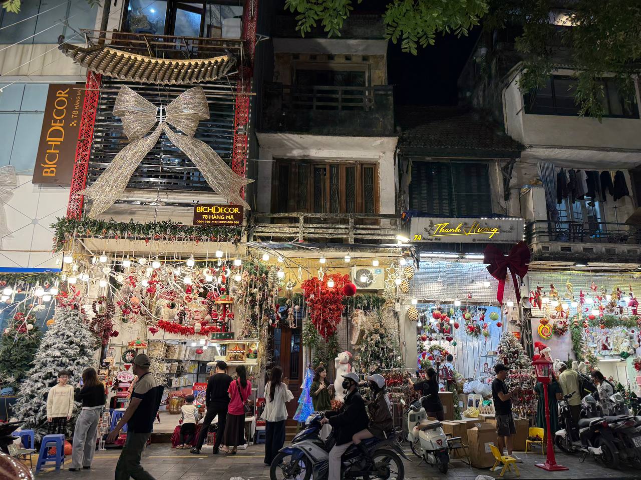 Khu vực Hàng Mã bày bán những món đồ trang trí Giáng sinh lung linh khắp cả con phố