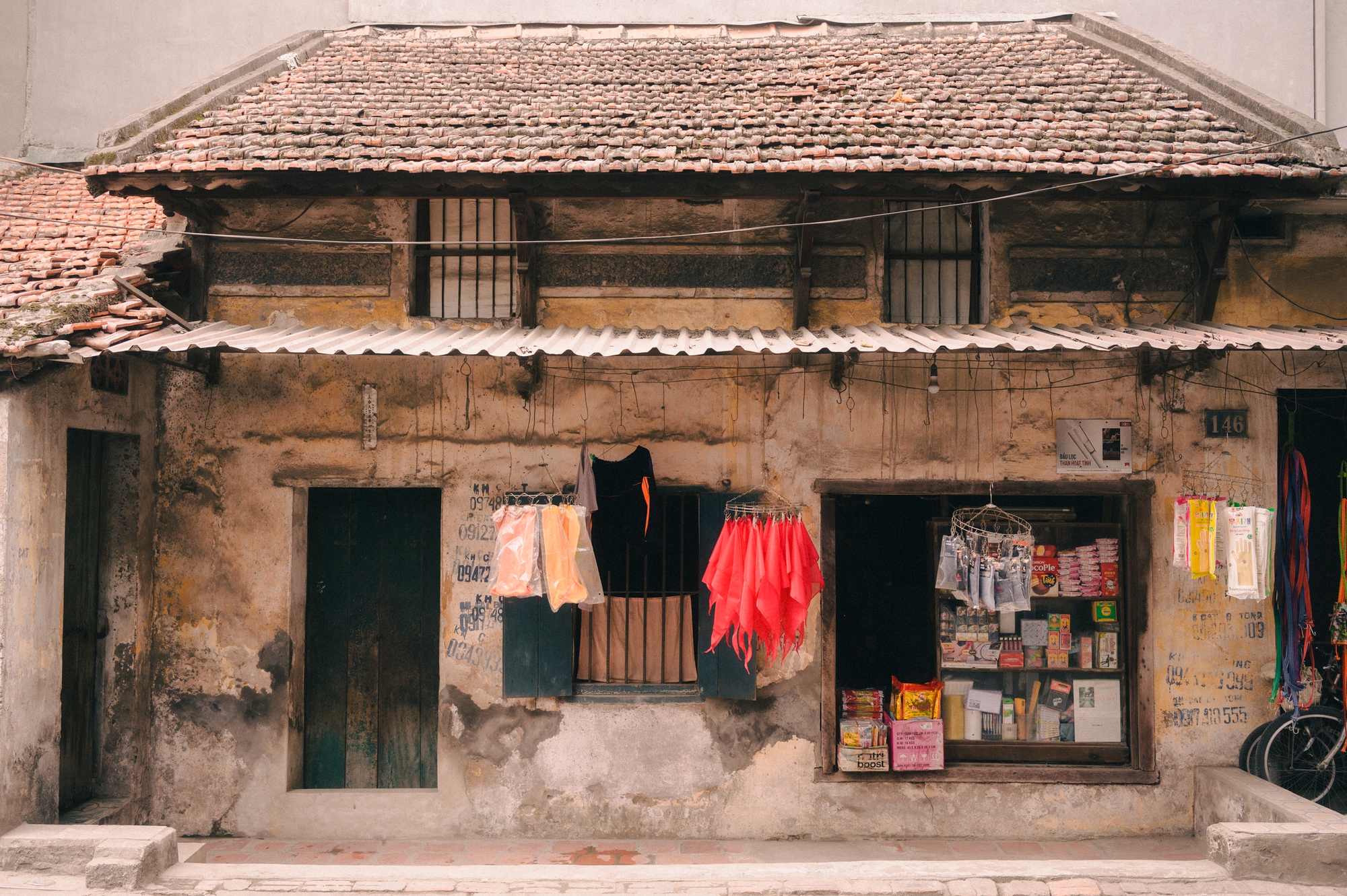 Giữa nhịp sống đô thị ngày càng gấp gáp, quán tạp hóa nhỏ nép mình trong căn nhà mái ngói cũ kỹ bất chợt gợi lại ký ức của một thời đã xa. Lớp tường bong tróc, màu vôi loang lổ theo năm tháng, những cánh cửa gỗ sẫm màu cùng mái ngói rêu phong như níu giữ không gian của vài chục năm trước.