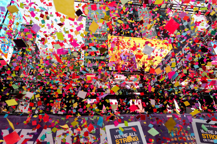 Tập duyệt thả giấy nhiều màu tại Quảng trường Thời đại chuẩn bị đón năm mới. (Ảnh: Reuters)