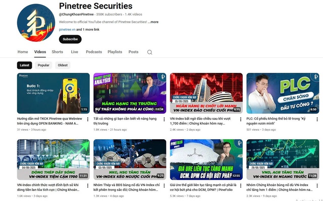 Ngay từ khi gia nhập thị trường Việt Nam năm 2019, Pinetree đã đẩy mạnh kênh YouTube và tiên phong áp dụng các định dạng mới như video, livestream, podcast và đồ họa cho bản tin, báo cáo chứng khoán.