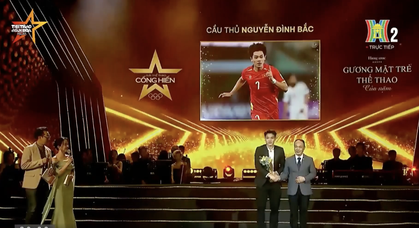 Tiền đạo Nguyễn Đình Bắc đã chính thức được xướng tên tại hạng mục Gương mặt trẻ thể thao của năm trong đêm gala trao giải Cống Hiến diễn ra tối 15/4/2026.