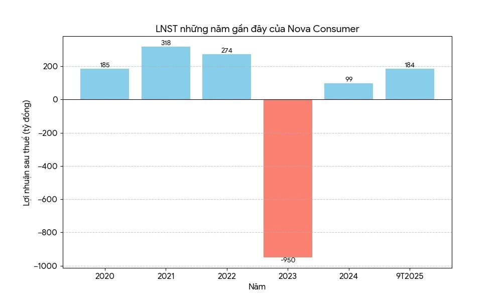 Sang năm 2024, doanh thu được duy trì ở mức 4.249 tỷ đồng, đồng thời công ty quay lại quỹ đạo có lãi với lợi nhuận gần 100 tỷ đồng. Đà phục hồi tiếp tục trong 9 tháng đầu năm 2025, khi Nova Consumer đạt 3.332 tỷ đồng doanh thu và lãi sau thuế 184 tỷ đồng.