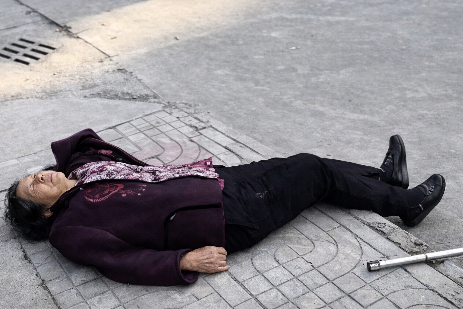 Cùng thời điểm đó, cụ bà họ Tưởng, 65 tuổi, đi bộ một mình thì bất ngờ trượt chân ngã mạnh xuống đất. Bà không thể tự đứng dậy và cất tiếng kêu cứu. Nghe tiếng kêu, ba đứa trẻ lập tức dừng chơi, chạy đến xem tình hình. Thấy cụ bà co quắp vì đau, các em quyết định đỡ bà dậy.