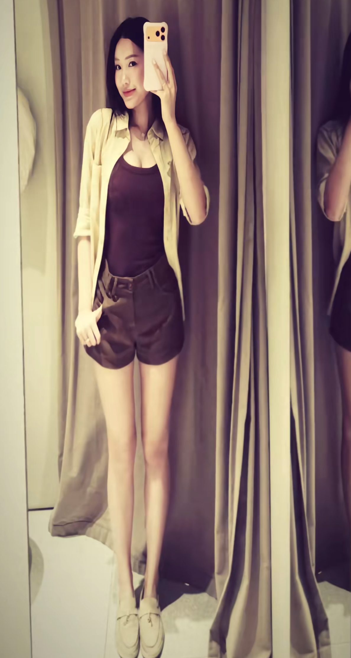 Không còn bó buộc trong những bộ cánh "tiểu thư" nhẹ nhàng, phong cách của bà xã Đoàn Văn Hậu dạo này có sự chuyển mình rõ rệt, táo bạo nhưng vẫn giữ được sự chuẩn mực của mẹ một con. Hải My rất chuộng các mẫu áo cổ vuông, cổ V sâu hoặc các chi tiết thắt dây trước ngực. Những thiết kế này không chỉ giúp cô khoe khéo vòng một đầy đặn mà còn tạo nên vẻ ngoài nữ tính, quyến rũ. Tận dụng lợi thế "đôi chân nuột nà", người đẹp thường xuyên diện quần short ngắn kết hợp cùng áo tank-top ôm sát.