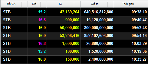 Các giao dịch thỏa thuận cổ phiếu STB trong ngày 9/1