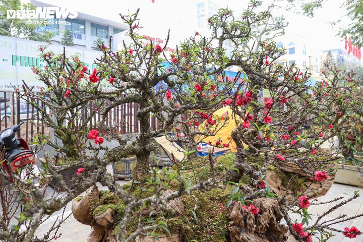Ngoài cặp đào giá gần 1 tỷ đồng, gian hàng này còn trưng bày hàng chục gốc đào thất thốn với nhiều dáng thế khác nhau.