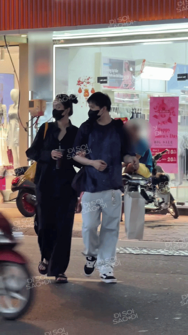 Cả hai cùng di chuyển ra ngoài, đeo khẩu trang che chắn nhưng không khó nhận ra diện mạo