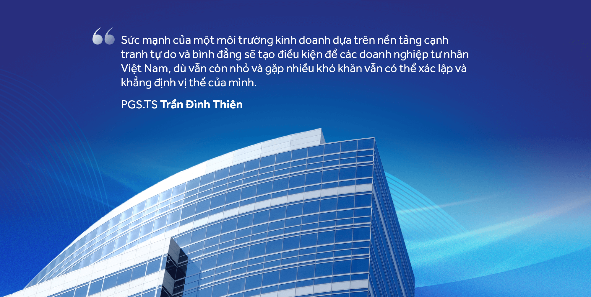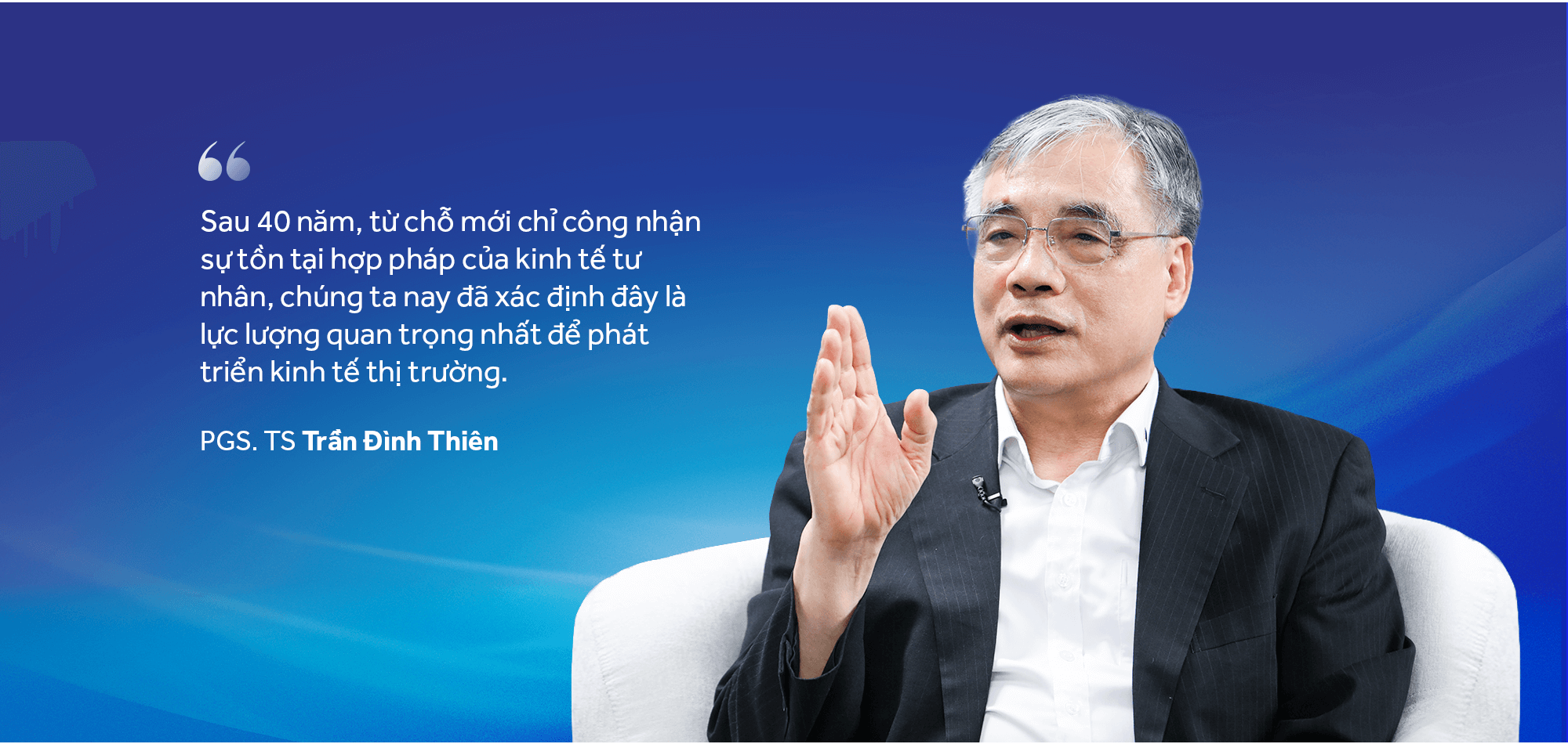 "Sau 40 năm, từ chỗ mới chỉ công nhận sự tồn tại hợp pháp của kinh tế tư nhân, chúng ta nay đã xác định đây là lực lượng quan trọng nhất để phát triển kinh tế thị trường. Bước ngoặt này cực kì quan trọng, là kết quả của hành trình cởi trói, giải phóng sức mạnh của nền kinh tế, và của khu vực kinh tế tư nhân," ông Thiên nhấn mạnh.