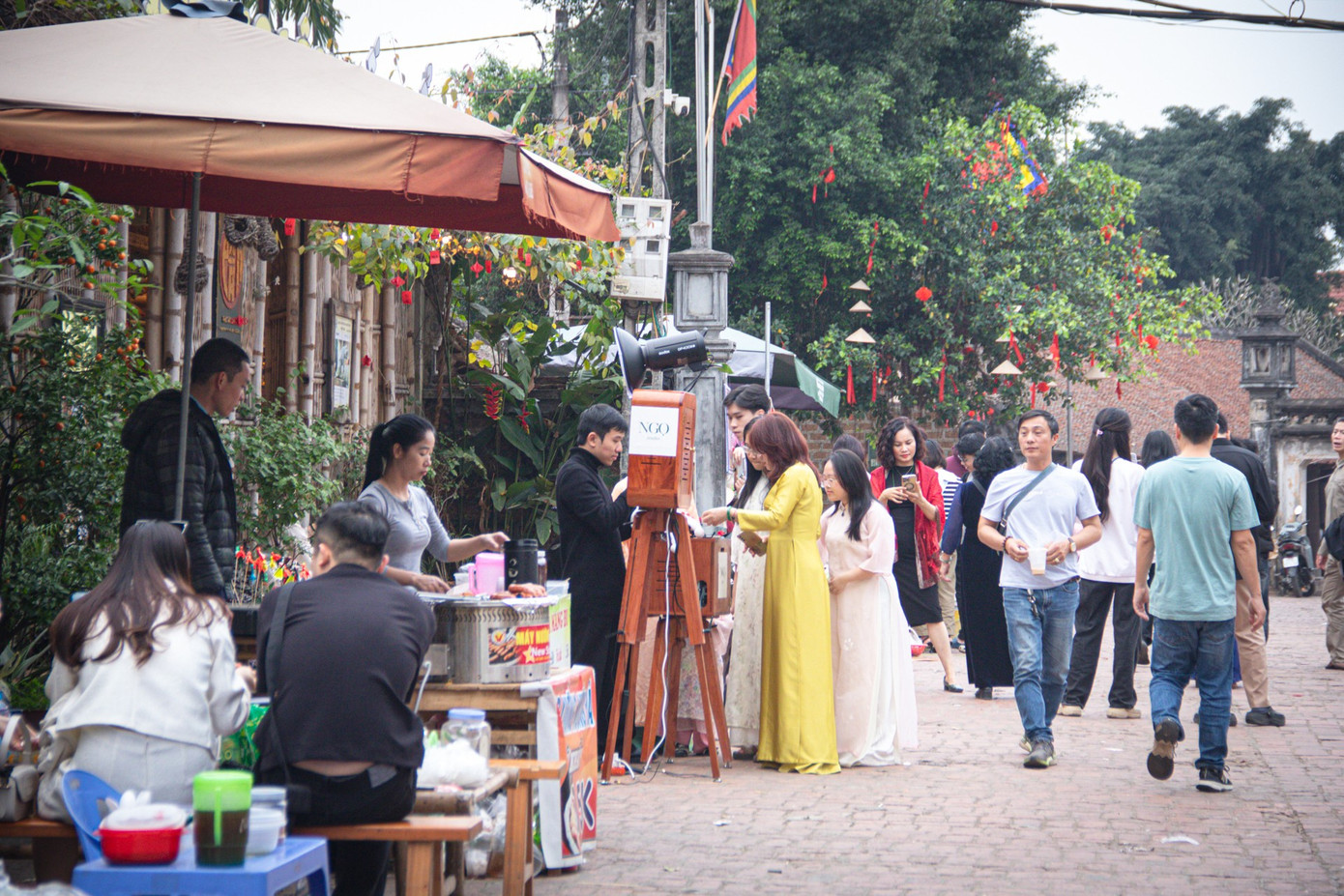 Thay vì tới các khu vui chơi hiện đại, nhiều bạn trẻ lựa chọn về làng cổ Đường Lâm (phường Sơn Tây, Hà Nội) để ghi lại những khung hình Tết trong những ngày đầu xuân. Không khí tại đây trở nên náo nhiệt khi du khách tập trung đông đúc tại các điểm tham quan nổi tiếng để trải nghiệm nét văn hóa truyền thống của vùng Bắc Bộ.