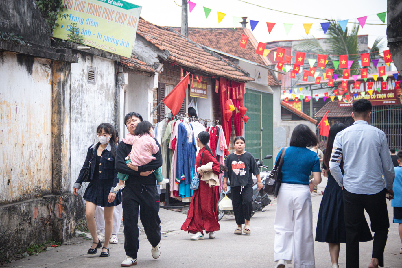 Dọc các ngõ nhỏ, dịch vụ cho thuê áo dài, chụp ảnh gia đình hoạt động nhộn nhịp. Du khách có thể lựa chọn từ áo dài truyền thống đến các mẫu cách tân, kết hợp phụ kiện như nón lá, quạt giấy để phù hợp không gian cổ kính.