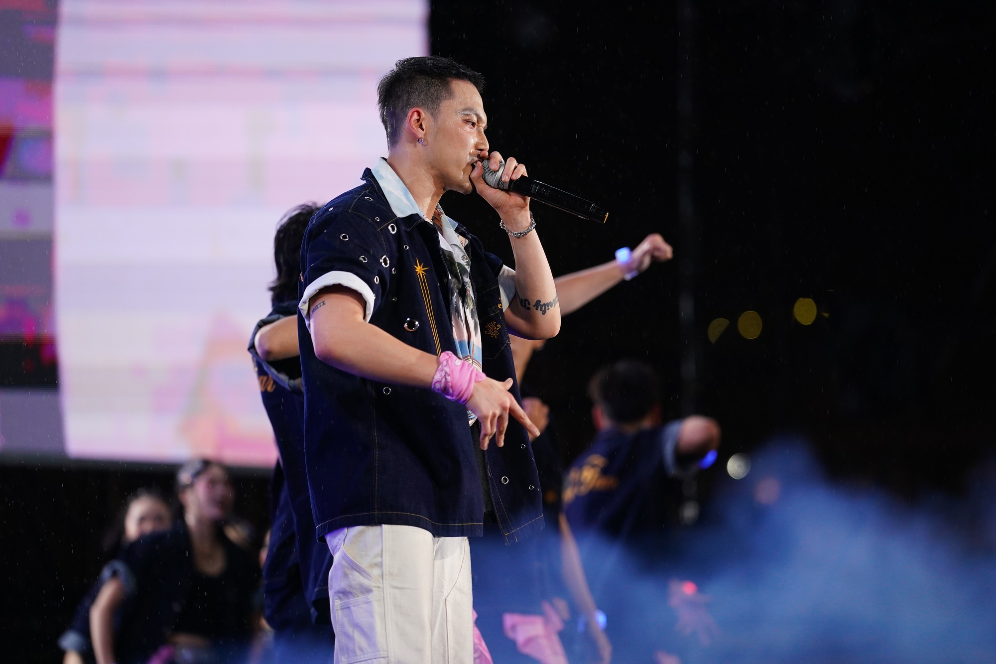 Trên sân khấu, Oliver và Bom (Thủng Long Family) xuất hiện với vai trò “kiến trúc sư” của sự kiện - không chỉ biểu diễn mà còn trực tiếp dẫn dắt khán giả. Sự kết hợp đa dạng giữa rap, MC, vũ đạo và các động tác vận động thể chất tạo nên một format biểu diễn vừa quen vừa lạ: quen về năng lượng, nhưng lạ ở cách khán giả được kéo vào cuộc chơi một cách chủ động. Ý tưởng này từng được nhắc đến trong nhiều mô hình giải trí, nhưng để triển khai mạch lạc, đồng bộ và đủ “đã” như tại SYNC FEST là điều không dễ. Và Thủng Long Family đã làm được.