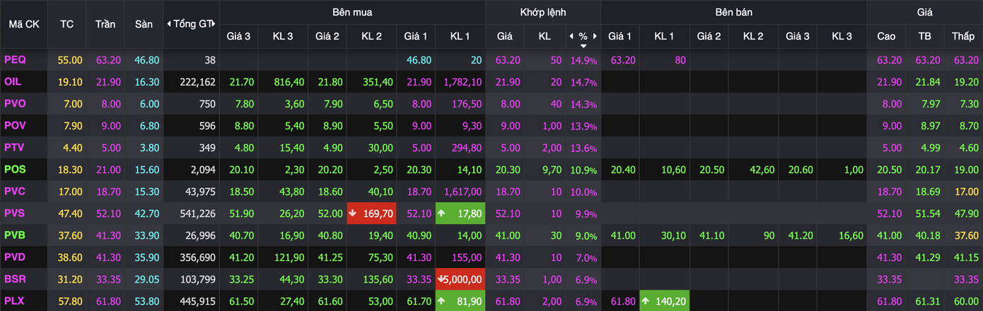 Đồng loạt cổ phiếu dầu khí tăng trần.