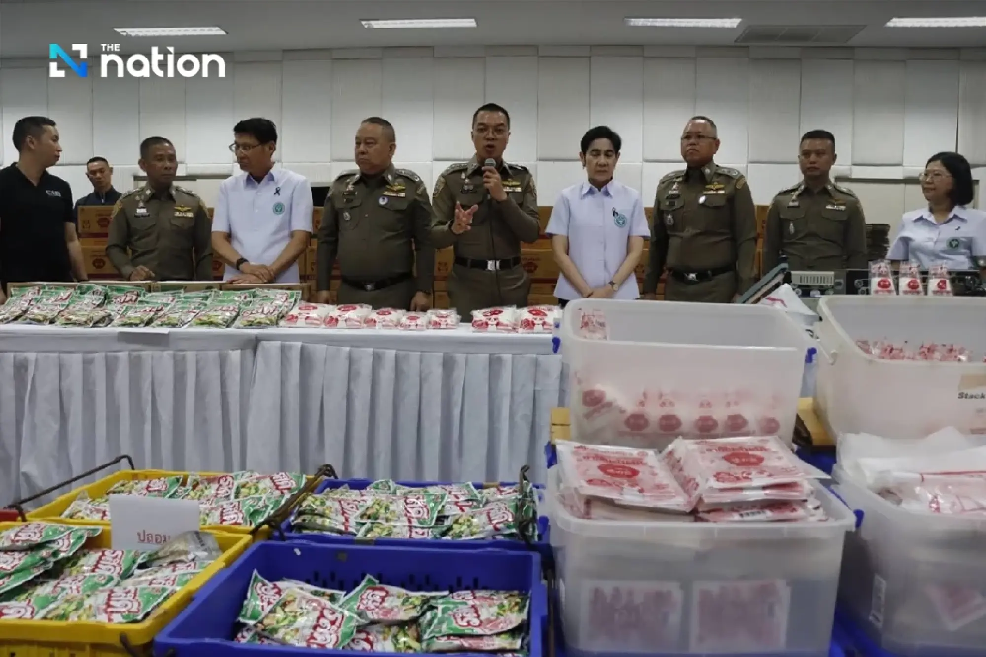 Tổng số tang vật bị thu giữ bao gồm 4.804 gói bột ngọt giả, 1.532 gói gia vị giả cùng số lượng lớn nguyên liệu và thiết bị sản xuất, nâng tổng số sản phẩm liên quan lên hơn 24.900 đơn vị, với tổng giá trị ước tính gần 2 triệu baht.