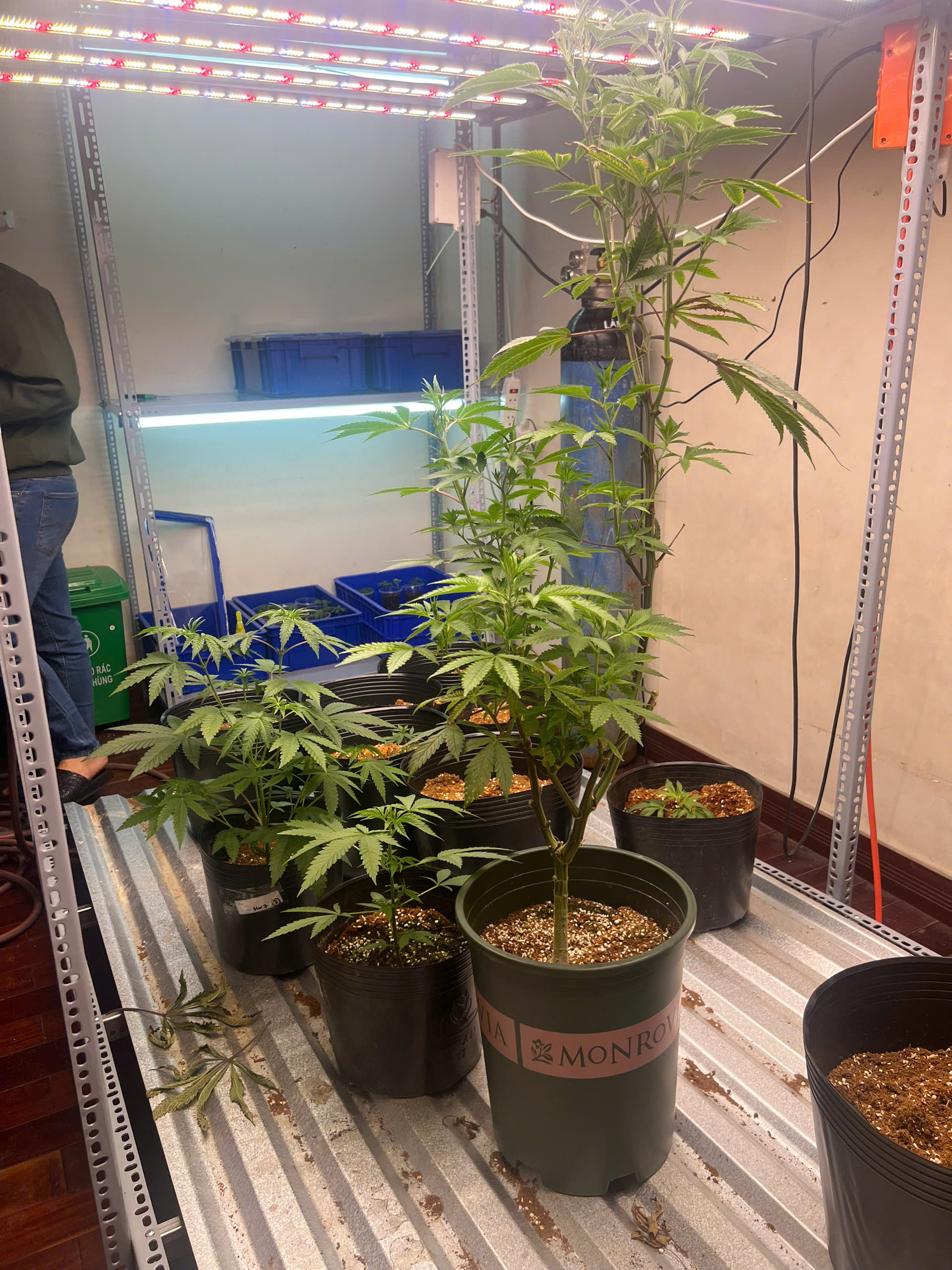 Tiến hành kiểm tra tại địa điểm trên, lực lượng Công an phát hiện nhiều vật tư, phương tiện dùng để trồng cây cần sa, đồng thời phát hiện 40 cây cần sa với nhiều kích cỡ khác nhau đang được nuôi trồng trong phòng kín, bố trí đèn chiếu sáng và hệ thống điều hòa hoạt động liên tục 24/24 giờ.