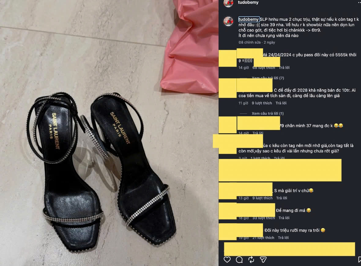 Không chỉ dừng lại ở đó, netizen còn soi ra cô cũng thanh lý đôi guốc hiệu Saint Laurent với giá còn cao hơn khi bán vào tháng 4/2024. Cụ thể vào năm 2024, Huyền My từng bán với giá 5,5 triệu nhưng mới đây bán với giá 6,9 triệu. Trong bài đăng thanh lý cách đây vài ngày, Á hậu 9x viết: "Hình như mua 20 triệu, thật sự nếu không còn tag tôi không nhớ đâu. Size 39 nhé. Về hưu rồi không showbiz nữa nên dọn luôn chỗ cao gót, đi tiệc hơi bị chảnh. 6 triệu 9. Ít đi nên chưa rụng viên đá nào".