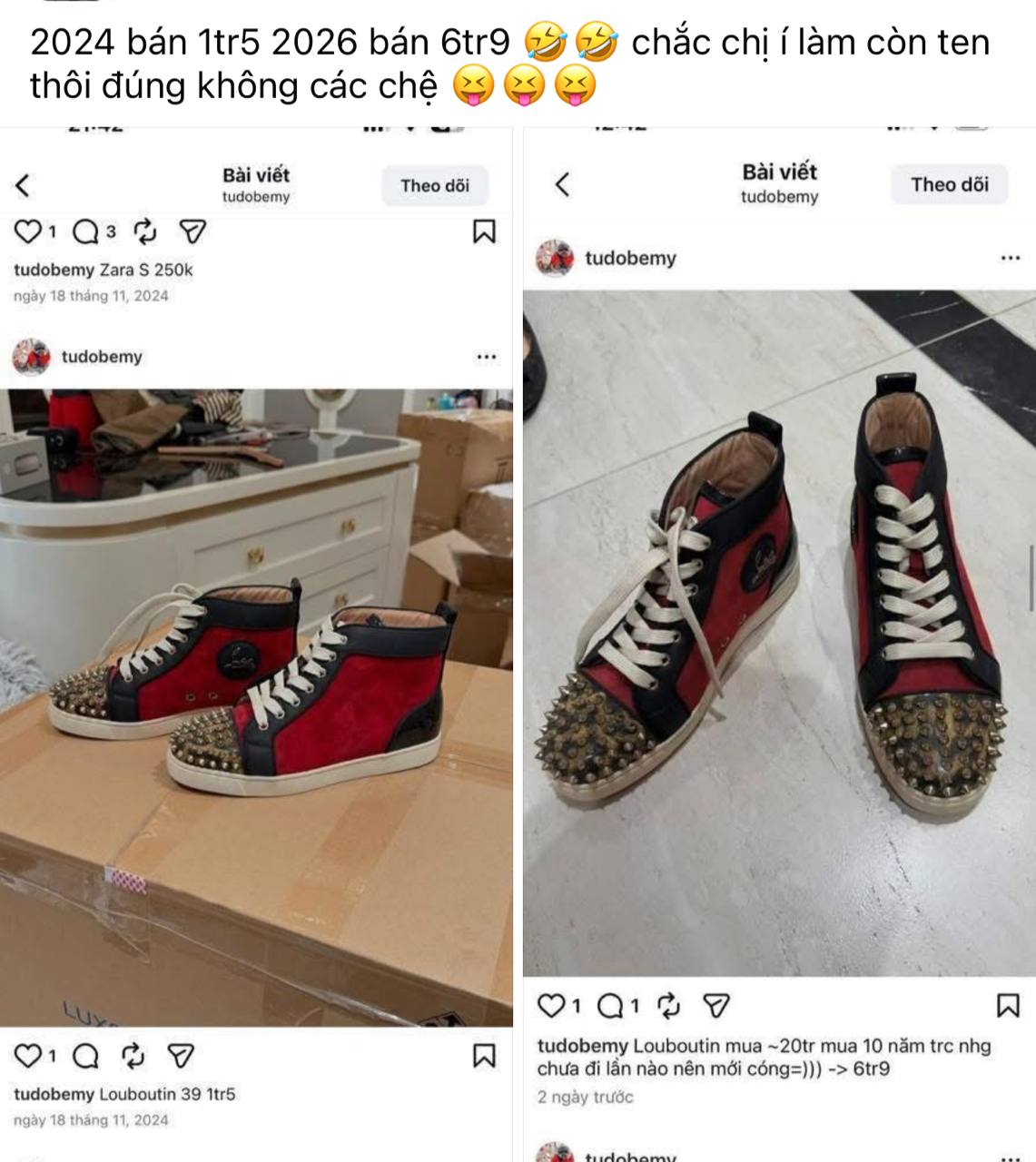 Mới đây, cư dân mạng phát hiện ra người đẹp 9x từng đăng bán đôi giày hiệu từ năm 2024 với giá còn rẻ hơn lúc thanh lý vào năm 2025. Ảnh: Chụp màn hình