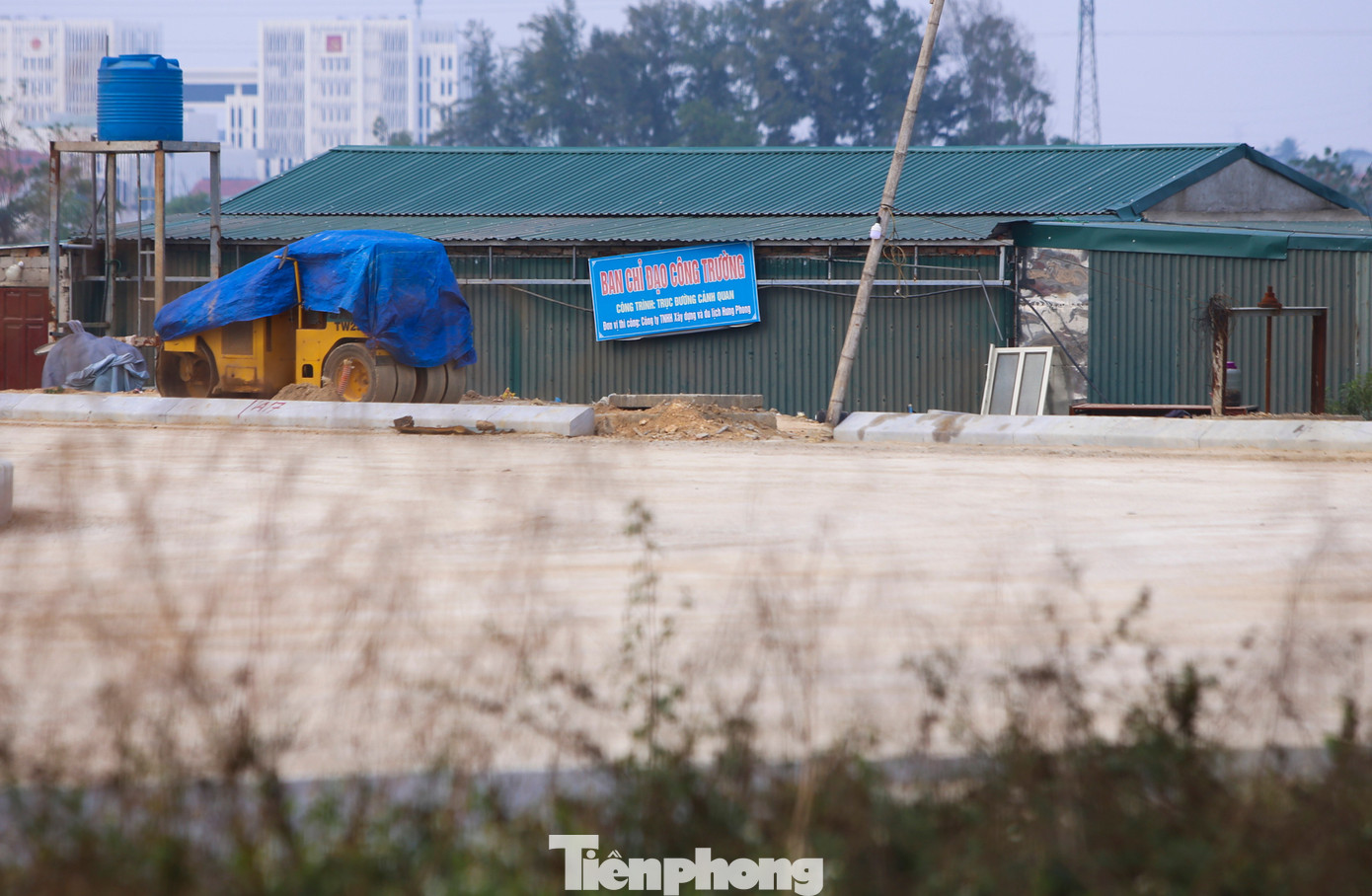 Ban chỉ huy công trường một số nhà thầu vắng bóng người do việc thi công tạm dừng vì vướng mặt bằng.