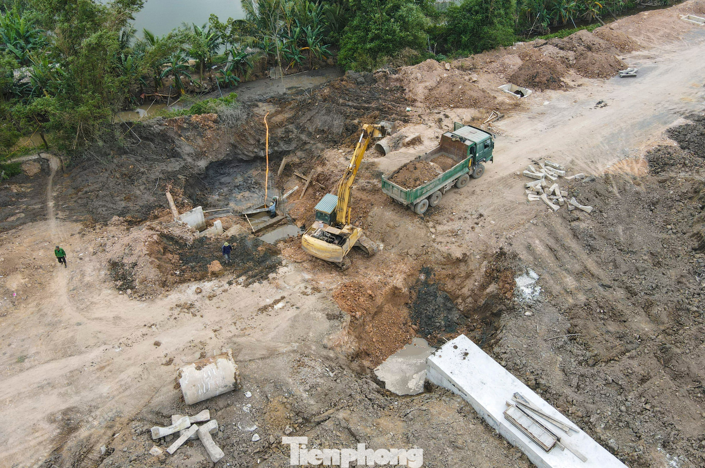 Nguyên nhân khác dẫn đến dự án chậm tiến độ là tuyến đường được thi công có nhiều vị trí đi qua kênh mương, ao hồ, thủy lợi.