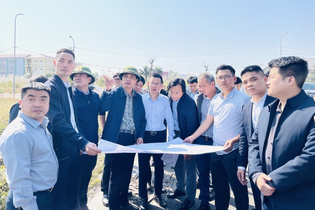 Ông Vũ Văn Diện, Phó Chủ tịch Thường trực UBND tỉnh Quảng Ninh (người chỉ tay) chỉ đạo tại thực địa dự án.
