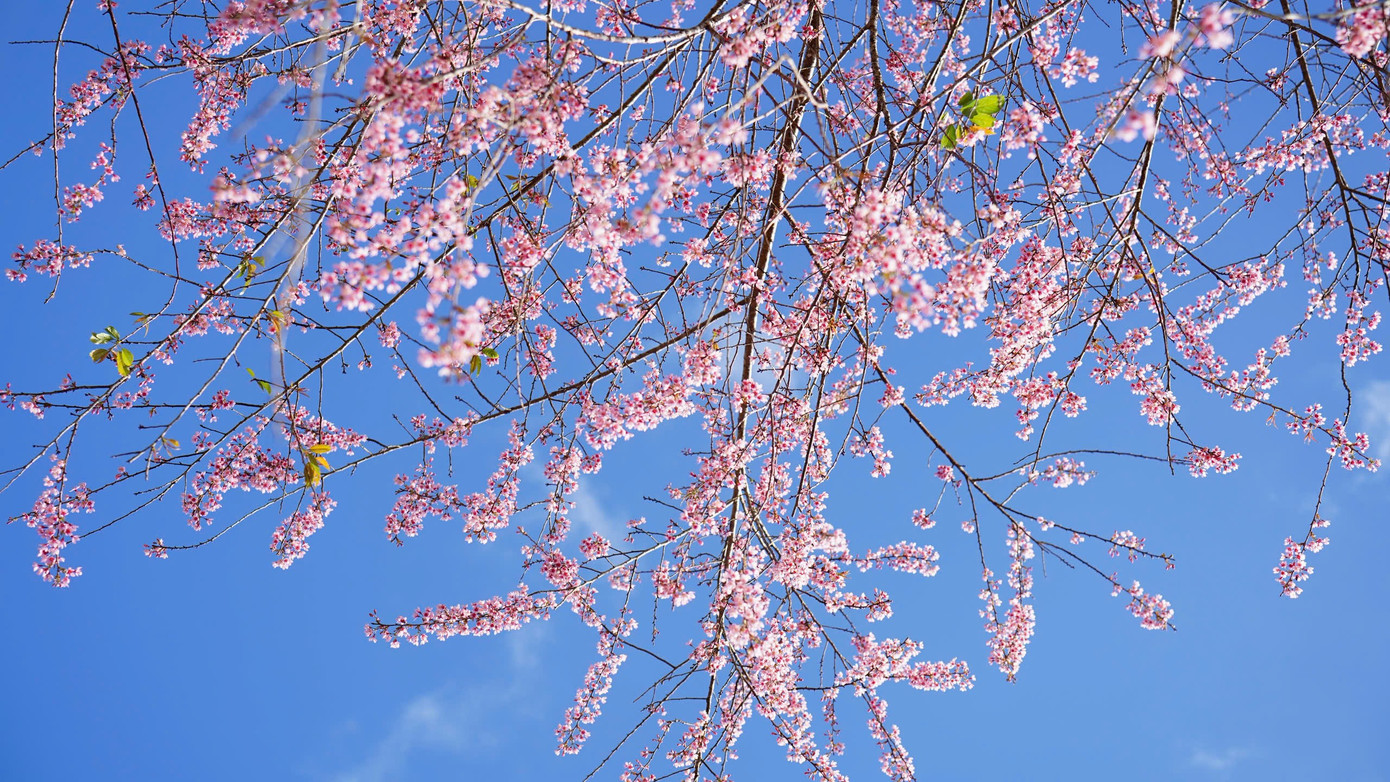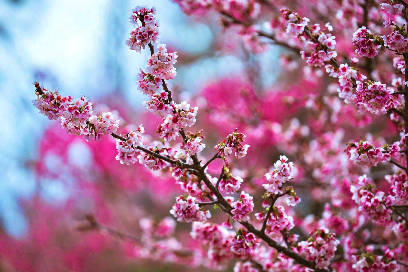 Từng chùm hoa mang sắc hồng bung nở trong không khí se lạnh.