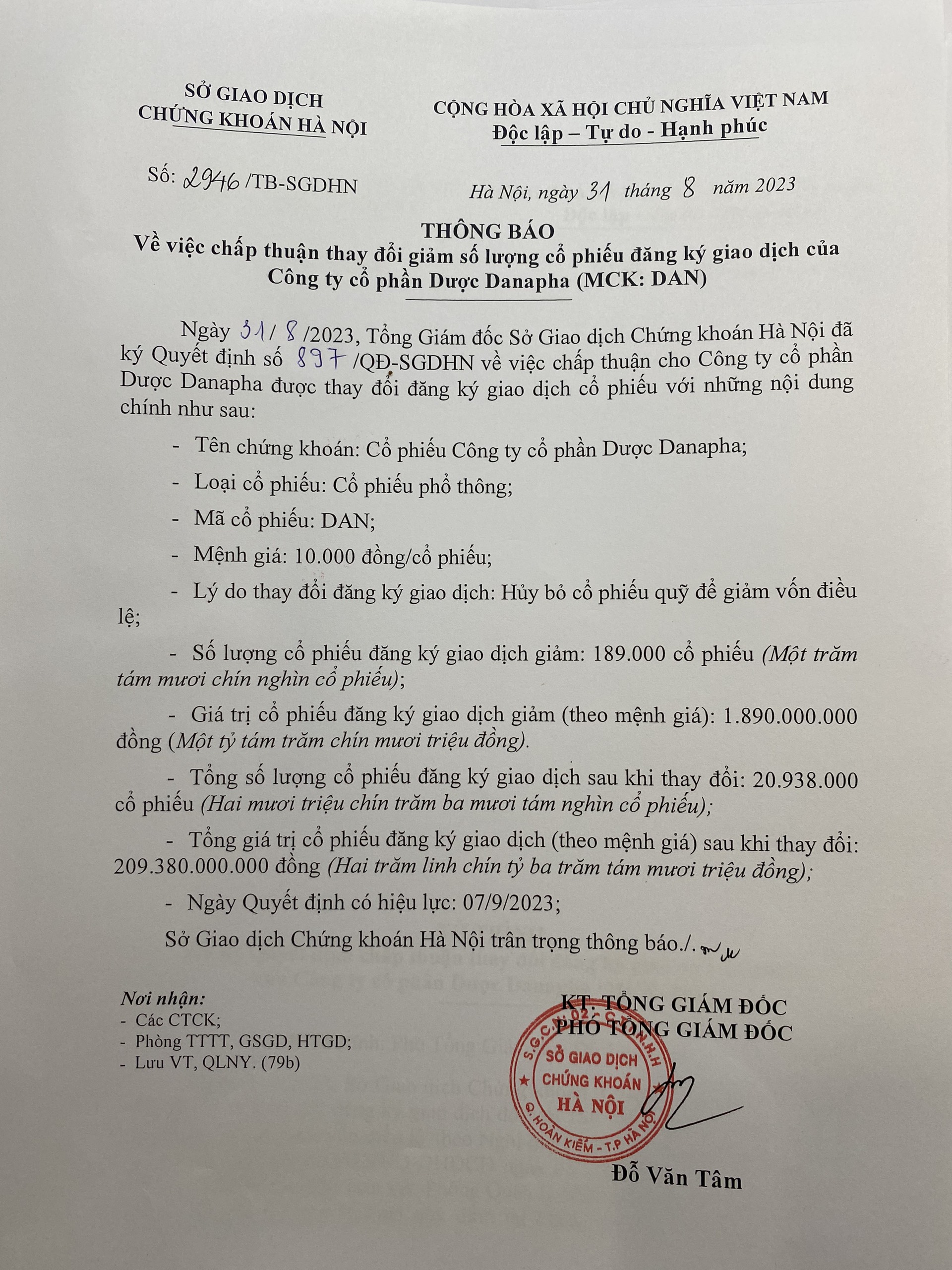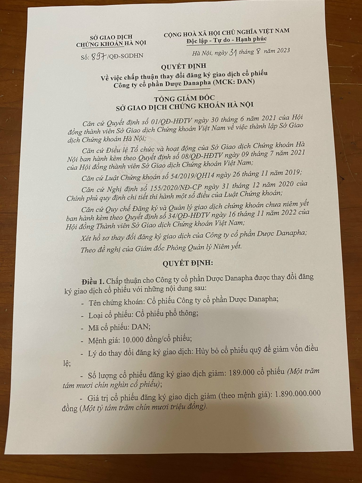 DAN: Giảm ĐKGD 189.000 cổ phiếu