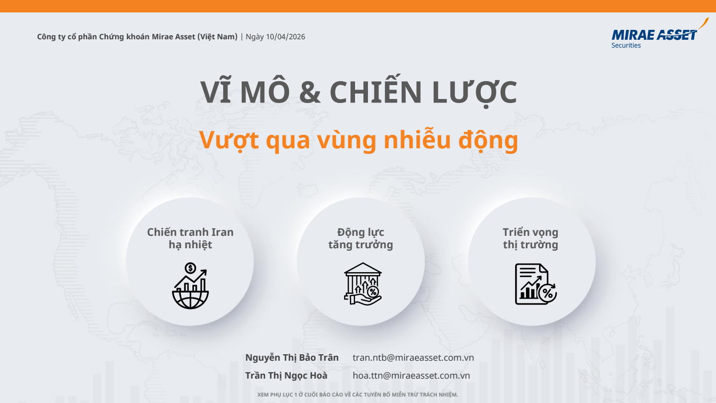 Mức định giá dựa trên tăng trưởng lợi nhuận: Việt Nam được kỳ vọng ở vị thế sẵn sàng tận dụng các động lực tăng trưởng nội tại, cân bằng lại với rủi ro bên ngoài gia tăng. Do đó, MIRAE giữ nguyên dự báo tăng trưởng lợi nhuận năm 2026 cho các doanh nghiệp niêm yết ở mức 20%. Mức tăng trưởng kỳ vọng sẽ được chúng tôi tiếp tục điều chỉnh trong mùa ĐHĐCĐ, phản ánh kế hoạch kinh doanh của các doanh nghiệp niêm yết.