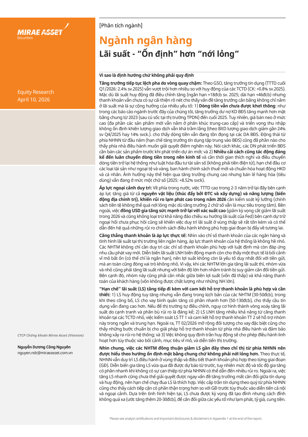 Ngân hàng dự định sử dụng lợi nhuận chưa phân phối để trả cổ tức bằng tiền mặt với tỷ lệ chi trả là 7%, tương ứng với tỷ suất cổ tức ước tính khoảng 2.9% trong 2026.
