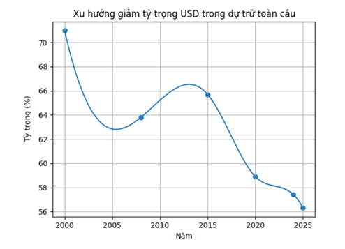 Những động thái này phản ánh những dịch chuyển cấu trúc sâu sắc. Tỷ trọng của đồng đô la trong dự trữ toàn cầu đã giảm từ 71% xuống 56,3% kể từ năm 2008, khi các ngân hàng trung ương mua hơn 1.000 tấn vàng mỗi năm trong ba năm liên tiếp.