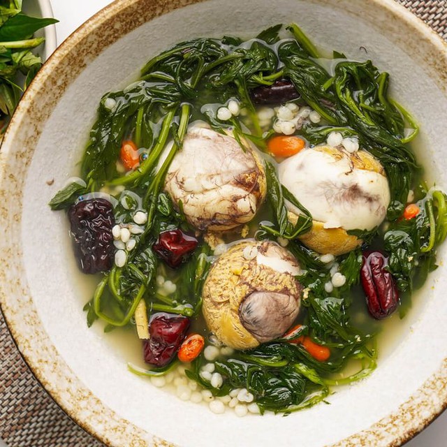 Đừng chỉ nghĩ trứng vịt lộn là món ăn vặt. Trong Đông y, trứng vịt lộn được coi là bài thuốc bồi bổ cơ thể cực tốt. Một quả trứng vịt lộn chứa tới 182kcal năng lượng, 13,6g protein và rất nhiều vitamin A, sắt.