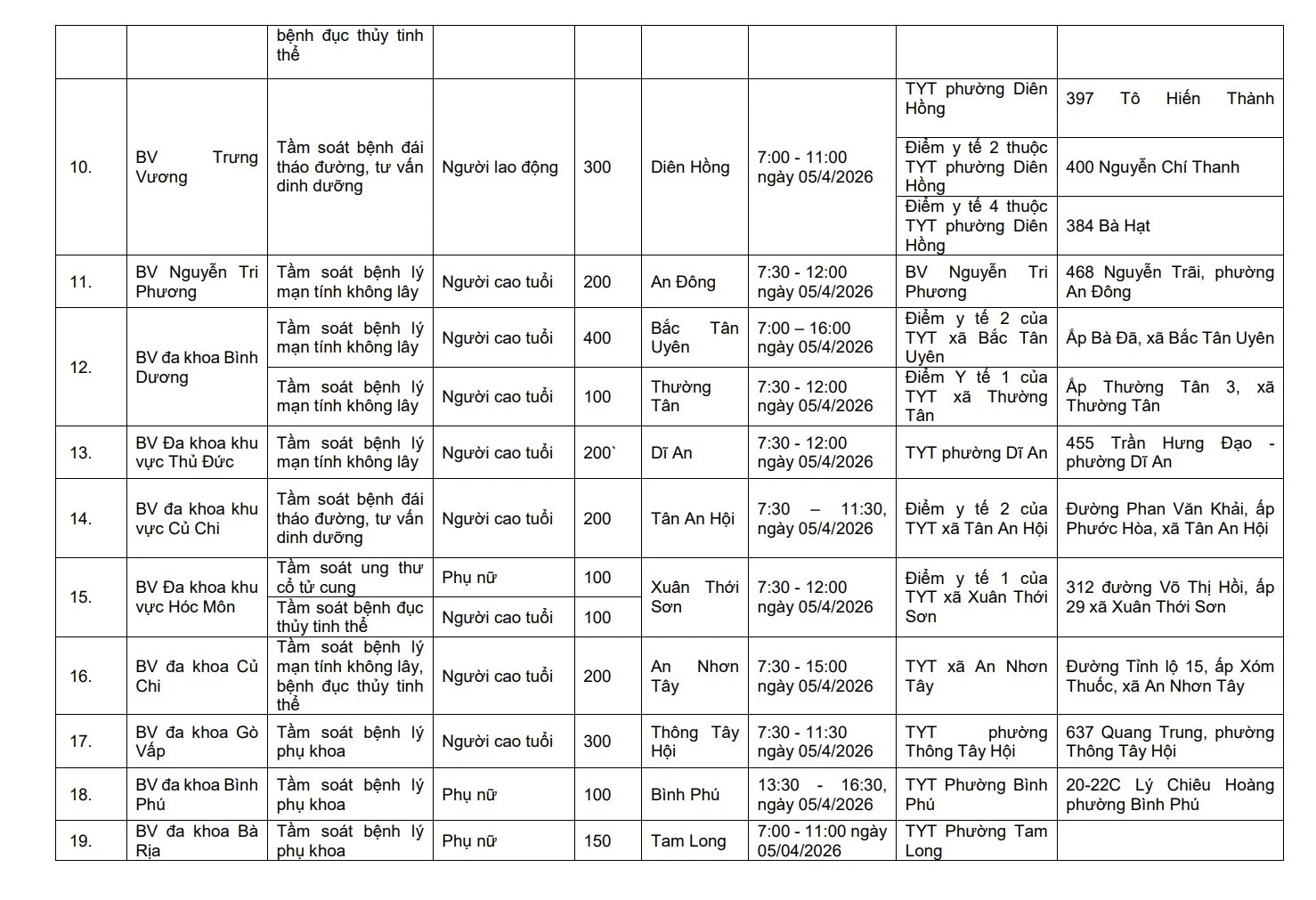 Danh sách địa điểm khám tầm soát bệnh trong ngày 5/4 tại TP.HCM